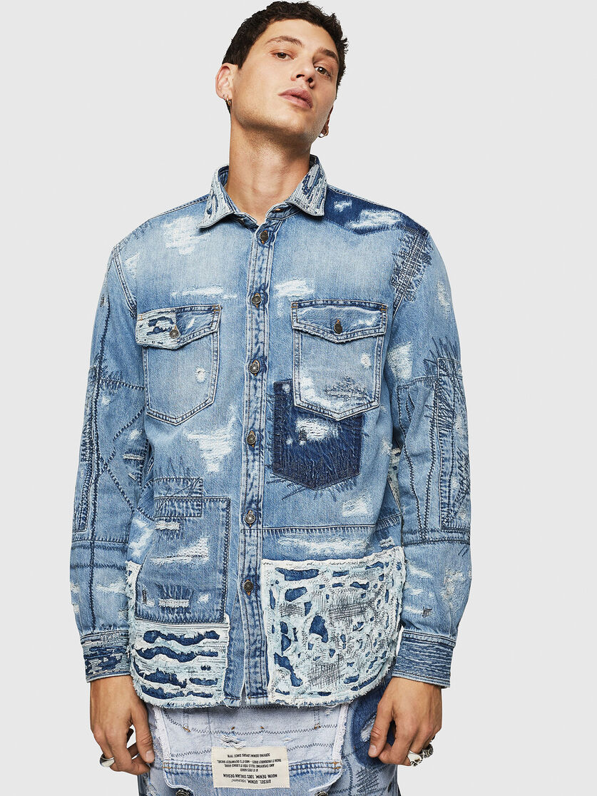 D Hisaky Sy Men Denim Shirt In Destroyed Patchwork Diesel