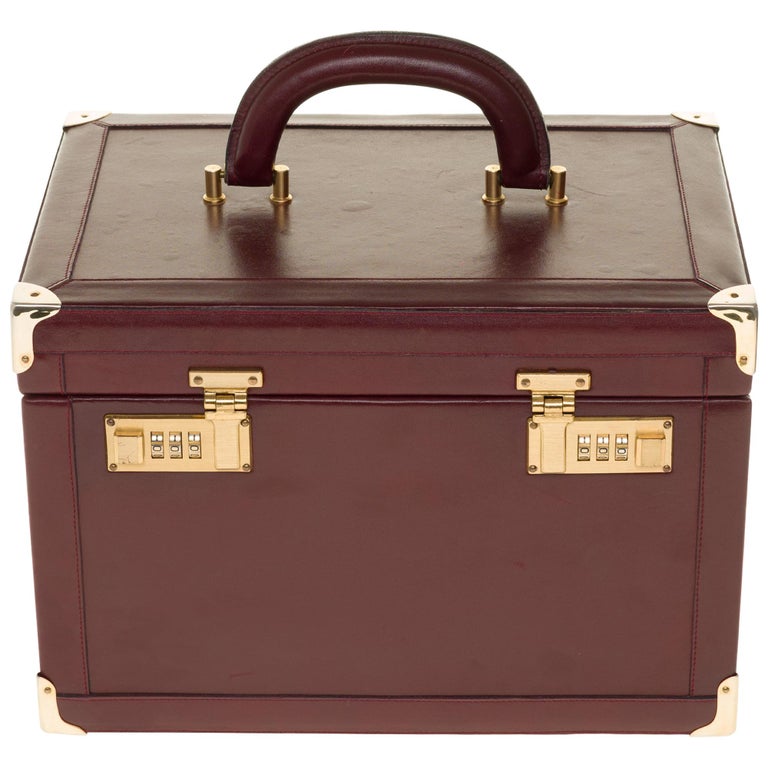 Beautiful Vintage Vanity Case Cartier In Burgundy Leather And Brass For Sale At 1stdibs