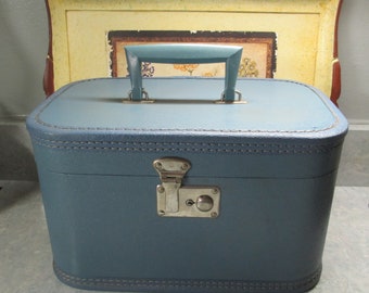 Vintage Blue Vanity Case Vintage Makeup Case Depop