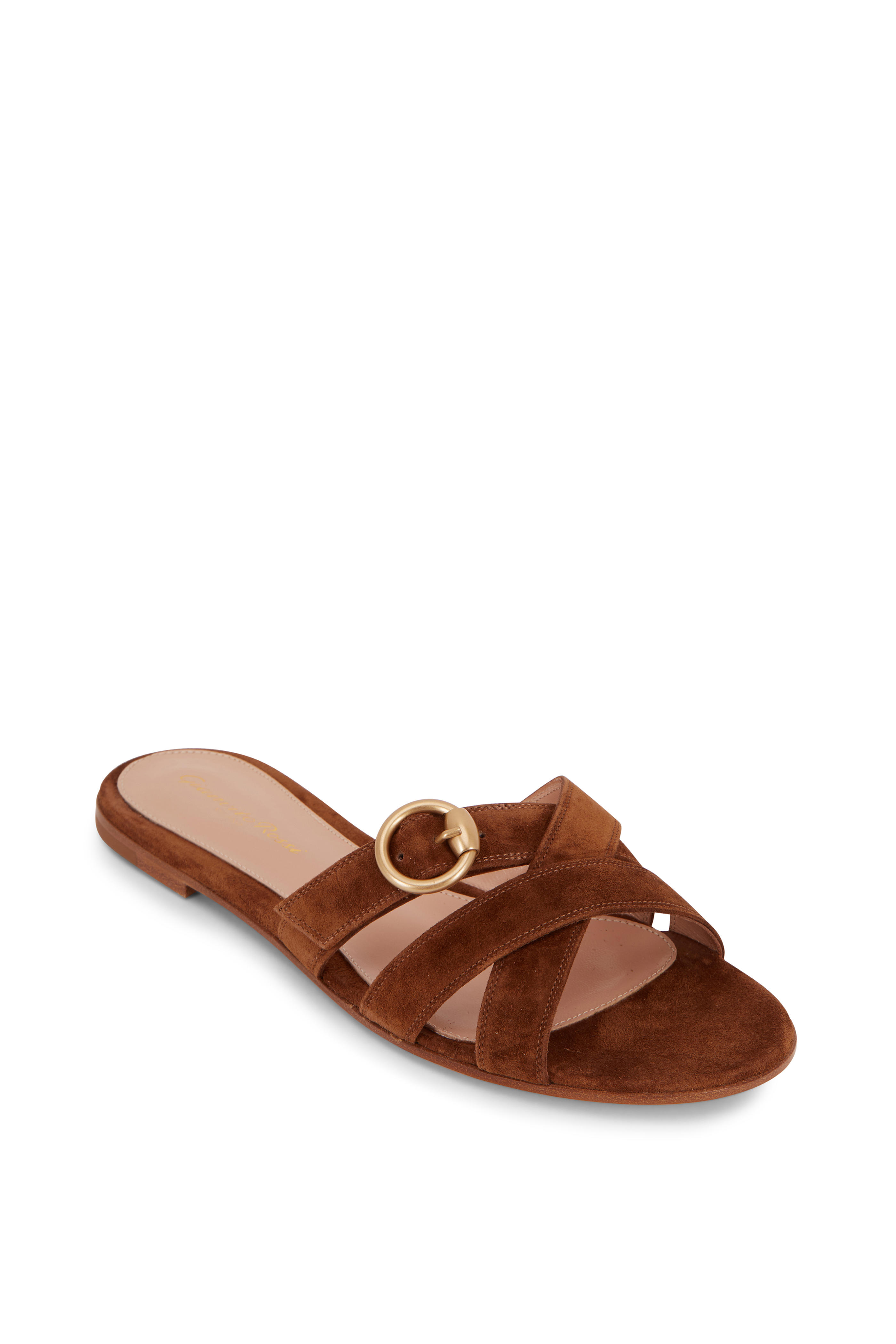 Gianvito Rossi Beya Camtexa Cognac Suede Buckle Slide Mitchell Stores