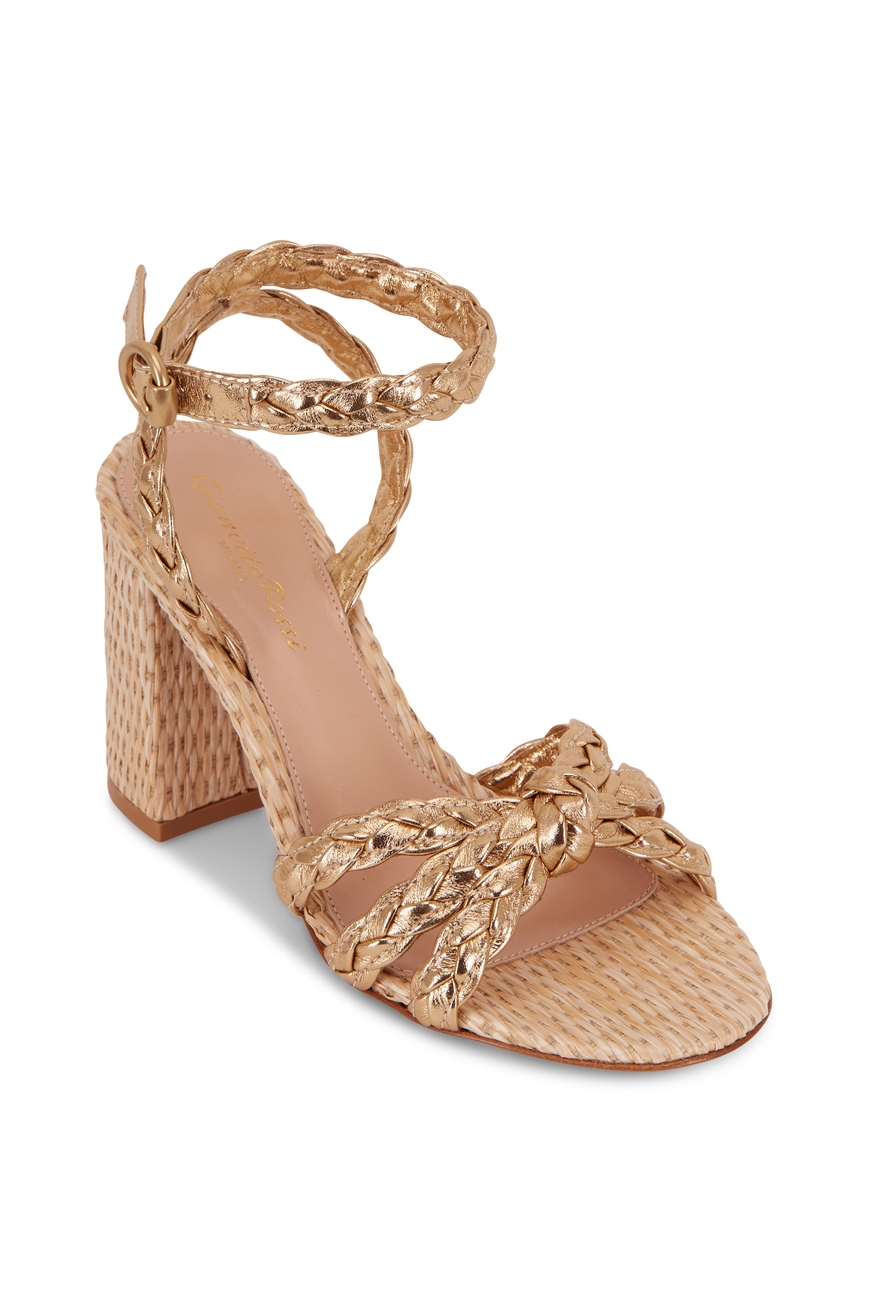 Gianvito Rossi Bee Gold Braided Leather Raffia Sandal 85mm Mitchell Stores
