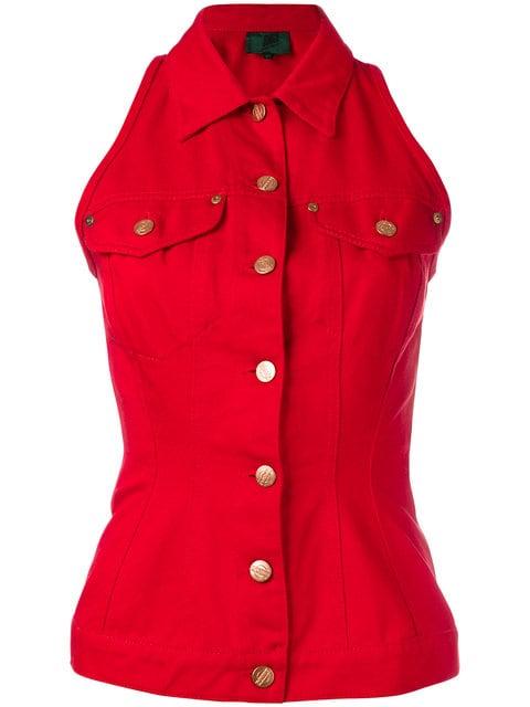 Jean Paul Gaultier Vintage Junior Gaultier Sleeveless Denim Jacket Red Modesens