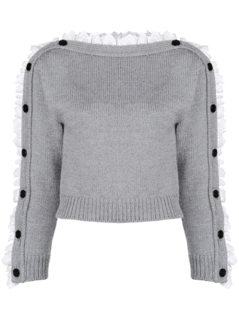 Gray Ruffled Lace Trimmed Knitted Sweater Philosophy Di Lorenzo Serafini Knitwear Fashion Knitted Pullover Long Sleeve Sweater