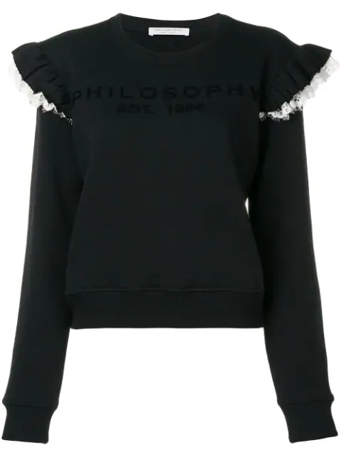 Philosophy Di Lorenzo Serafini Ruffle Lace Trim Sweatshirt In Black Modesens