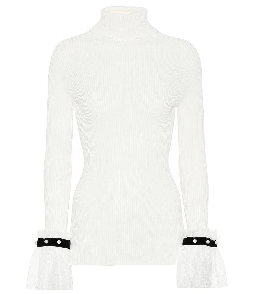 Ruffled Lace Trimmed Ribbed Jersey Turtleneck Top By Philosophy Di Lorenzo Serafini Moda Operandi
