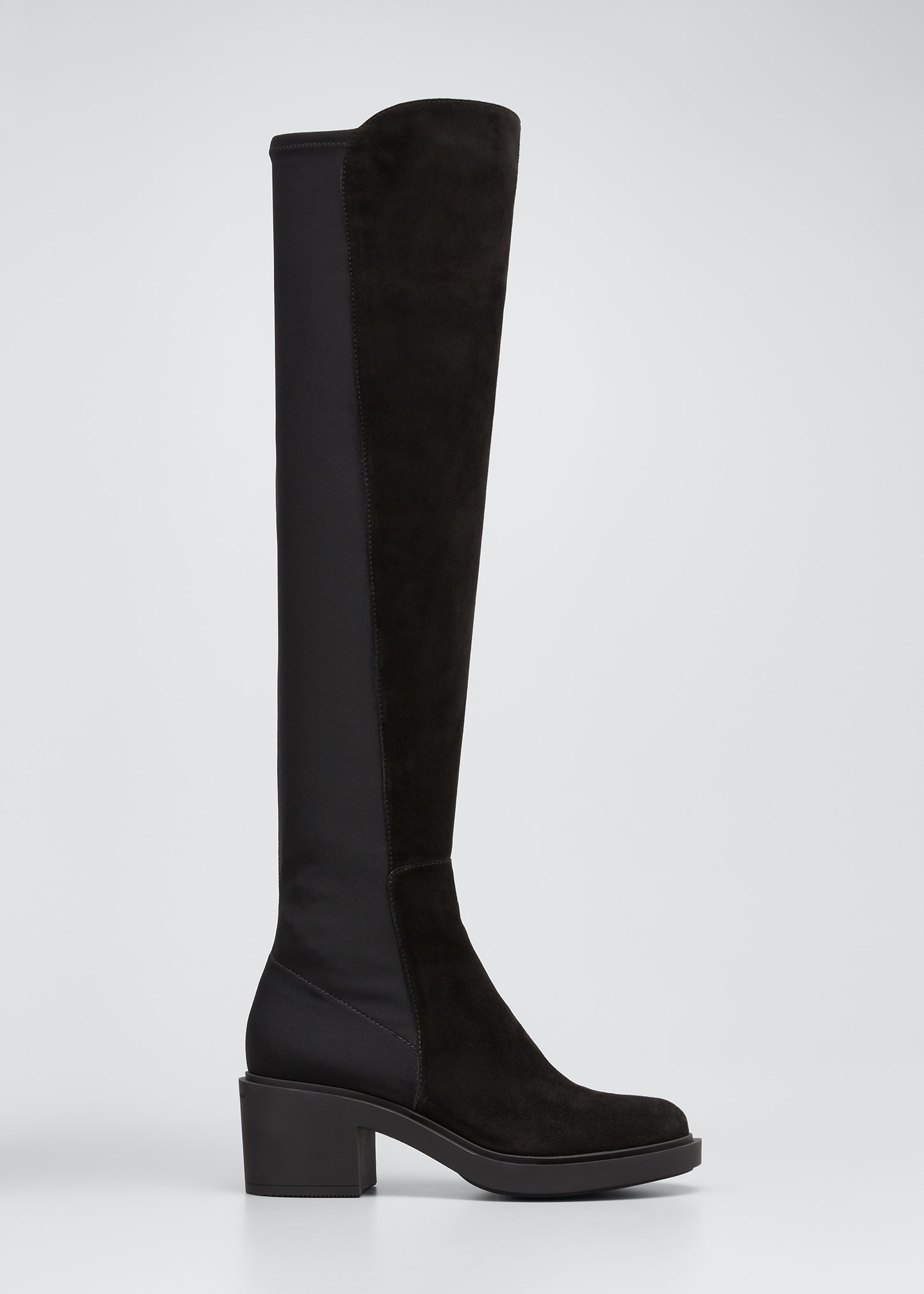Womens Gianvito Rossi Boots Isabella 100 Stretch Lace And Suede Over The Knee Boots Black Black Rosalia Fedesa