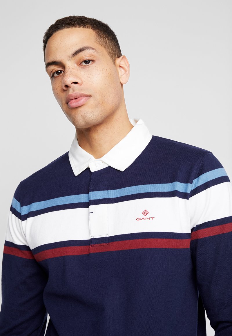 Gant Striped Chest Heavy Rugger Polo Shirt Evening Blue Dark Blue Zalando Co Uk