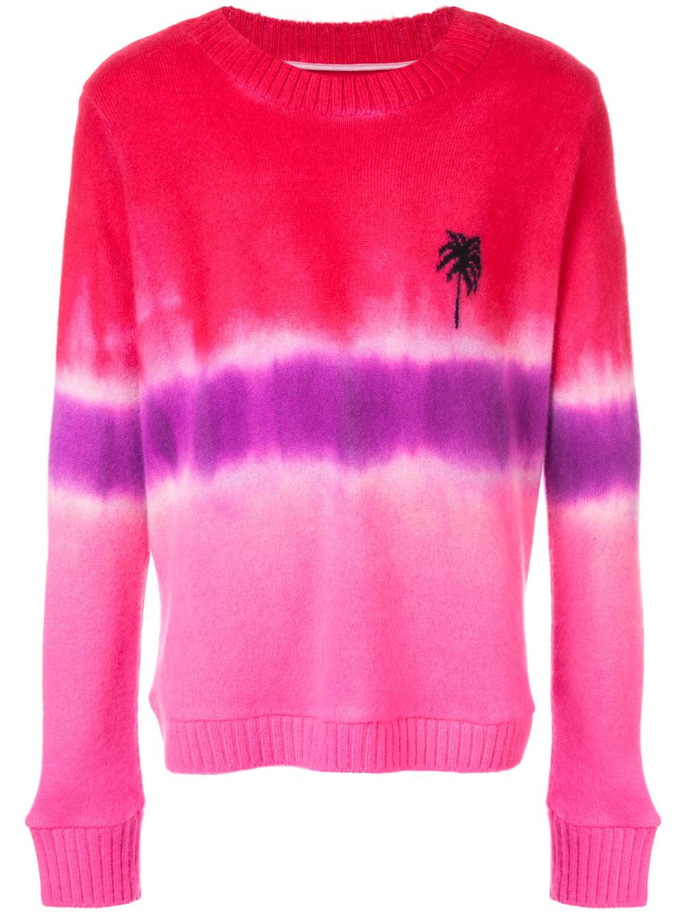 The Elder Statesman Pink Tie Dye Palm Tree Cashmere Sweater In Pink Purple Modesens