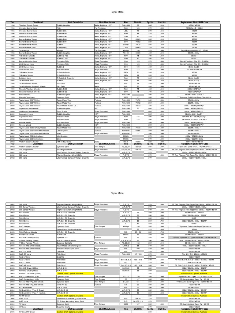 Taylormade Shaft Specs Summer Sports Sports Equipment