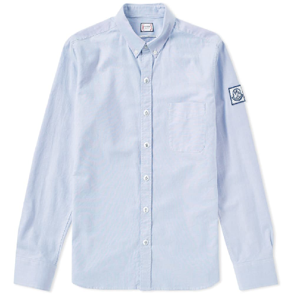 Shop Moncler Gamme Bleu Classic Pop Stud Oxford Shirt In Blue