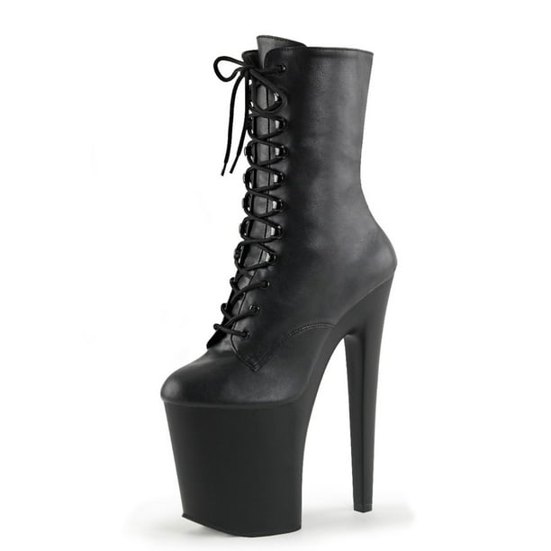 Pleaser Womens Heeled Combat Boots Black Lace Up Mid Calf Boots Full Zipper 8 Inch Heel Walmart Com Walmart Com