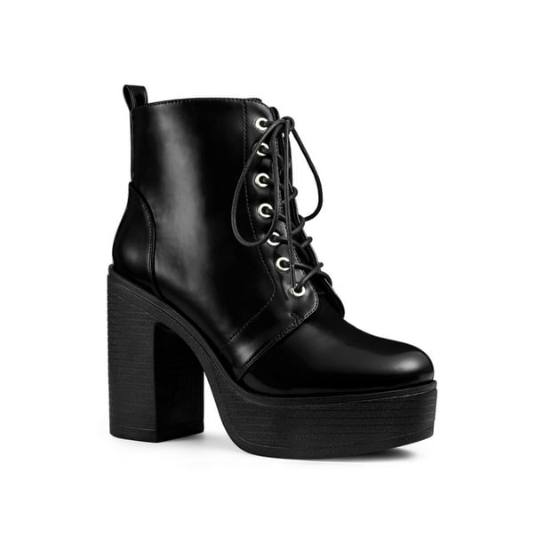 Amazon Com Allegra K Women S Platform Chunky High Heel Lace Up Combat Boots Ankle Bootie