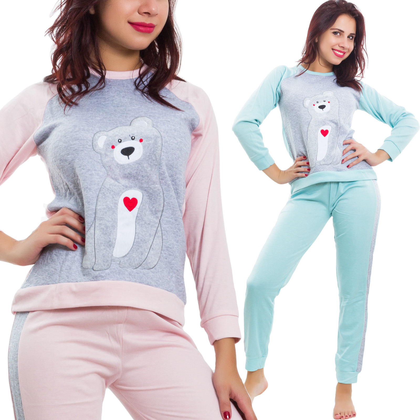 Pyjama Femme Nuit Douceur Chaud Ours Cœur Manches Longues Lingerie Vi 6121 Ebay