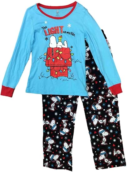 Peanuts Pour Femme Snoopy Dog Pyjama Flocon De Neige Et Cœur Veille De Noel Ensemble Blue Size X Large Amazon Ca Vetements Et Accessoires