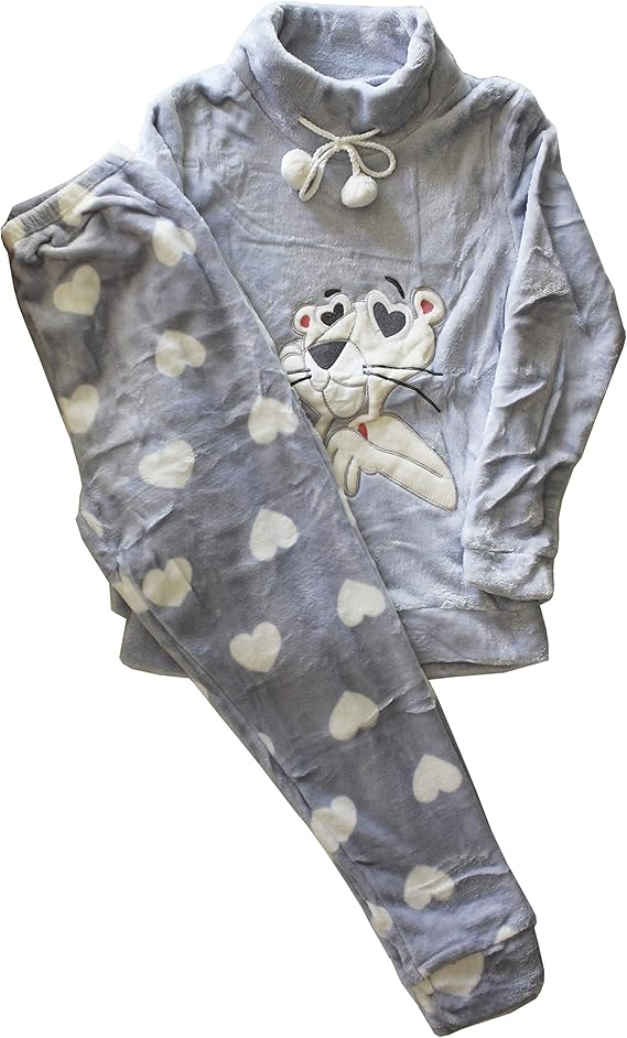 Fereti Pyjama Femme Bleu Pink Panther Panthere Rose Polar Coeur Cou Haut Epais Amazon Fr Vetements Et Accessoires