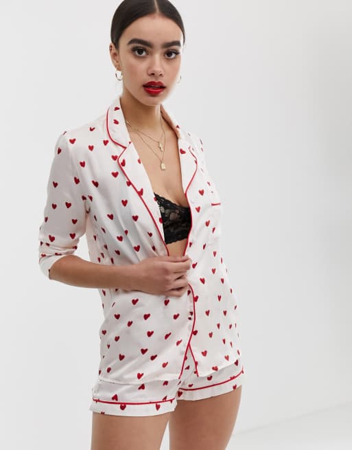 Missguided Ensemble De Pyjama En Satin A Imprime Cœur Asos
