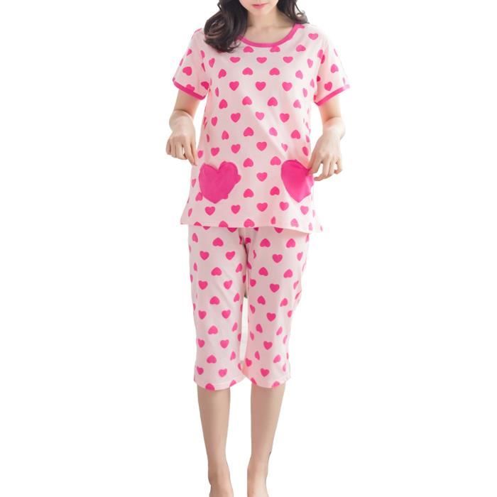 Femme Pajamas 2 Pieces Recadree Coeur Modele A Manches Courtes S Rose Achat Vente Pyjama Cdiscount