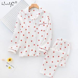 Hot Deals Ensemble Pyjama Pour Femme Nouvelle Collection 19 Pantalon Femme Manches Longues En Coton Crepe Imprime Cœur Double Couche Simplicite Gaze Fra Rameswaram Co Store