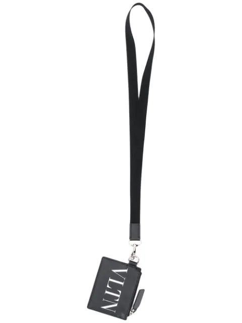 Black Valentino Garavani Logo Print Leather Zipped Wallet With Lanyard Valentino Mr Porter