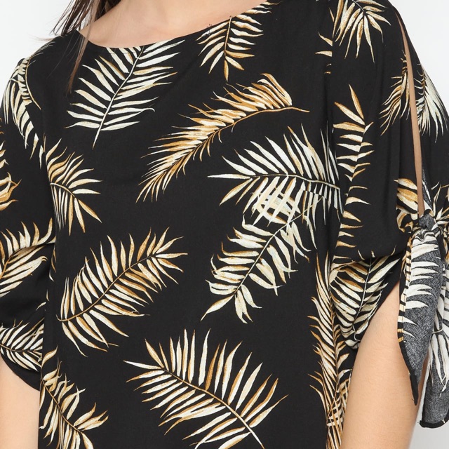 H M Dress With Tie Sleeves Black Palm Hmdp3009 C3 Shopee Indonesia