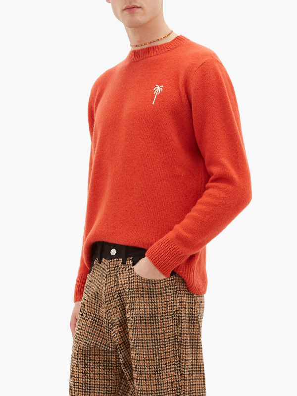 The Elder Statesman Palm Tree Embroidered Cashmere Sweater In Orange Modesens