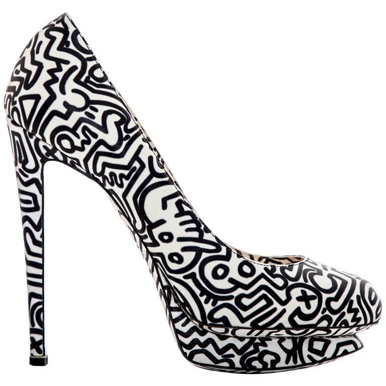 Keith Haring X Nicholas Kirkwood Leather Printed Platform Pumps 5 25 Heel 0 84 Platform Available On Kirkwood Black And White Shoes Shoe Stores Online
