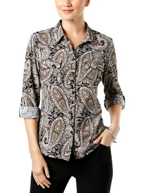 Amazon Com Ny Collection Women S Petite Size 3 4 Sleeve Y Neck Allover Printed Blouse Clothing