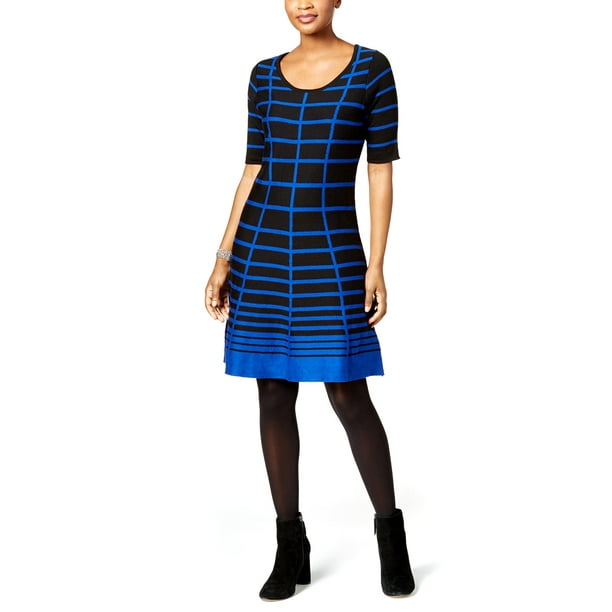 Ny Collection Petite Women S Sweater Dress Fit Flare Red Black Size Pm Medium Ebay