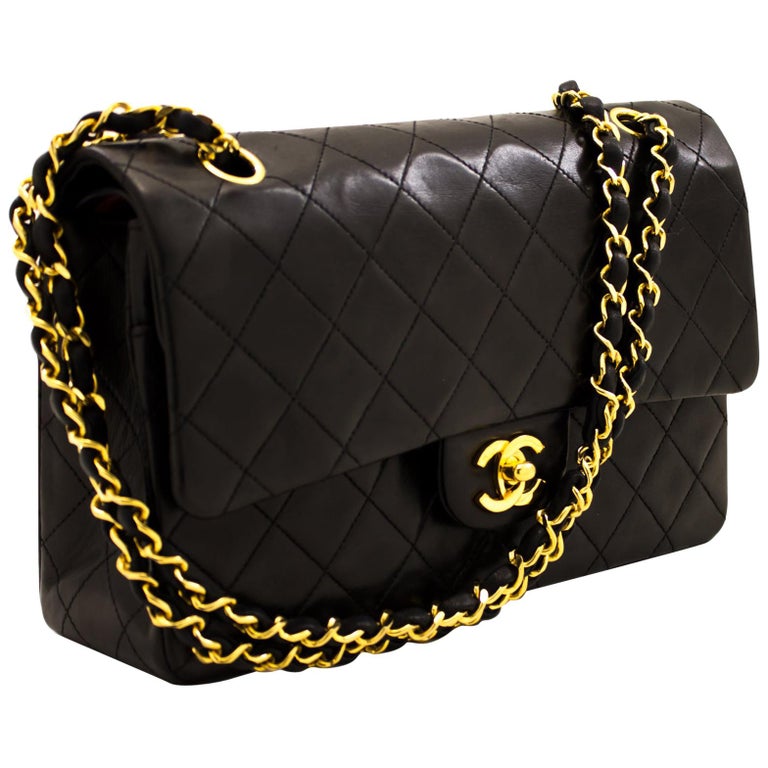 Chanel 2 55 Double Flap Medium Chain Shoulder Bag Lambskin Black At 1stdibs